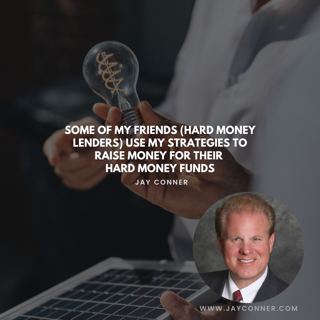 Some of my dear friends who are hard money lenders use my strategies to raise money for their hard-earned funds.