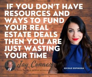 This goes perfectly hand in hand with Nicole’s service on short sales. The name of this guide that I just finished writing is Seven Reasons Why Private Money Will Skyrocket your real estate business and help you build incredible wealth. You can get it for free right after the show at www dot J Conner, J a Y C O N N. eer.com/money guide. Download it. You’ll get Private Money right away. Again, that’s J Conner, J a Y C O N N. eer.com/money guide. And I tell you, Nicole, I mean, that’s it that’s asked the question. I know in this word, a short sale, the real estate investors gotta have gotta have the cash ready to go sitting on the shelf. And that’s why I tell real estate investors to get the money lined up first. And Nicole, I know you’ve heard it. I know you’ve heard it. I’ve heard it a hundred times from other educators. They say, get the deal under contract, get the deal under contract. The money will show up, give me a break. Where’s the money gonna show up? Is it gonna rain outta the clouds or something? And you know, I tell P all the time, think how much more confident you’re gonna be. Oh yeah. To make offers. When you got $500,000 burning a hole in your pocket, right?