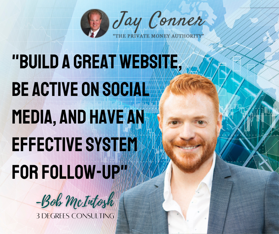 That’s www.JayConner.com/MoneyGuide for the fast track to private money. So, Bob, you said the three critical elements of being on point with your digital marketing is the website. And then we got social media posts that we just talked about. And then you said a phenomenal on-purpose, intentional, thought, follow-up system.