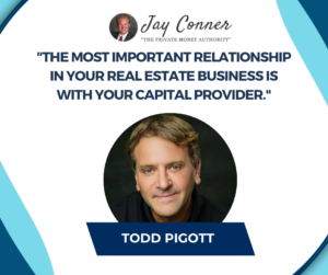 Thank you. Tod well, there you have it, my friends. Another amazing episode of Raising Private Money with Jay Conner. And if you found this valuable episode this episode to be valuable, and I know you did, then do me a big favor. If you’re listening on iTunes, be sure and follow. If you’re listening on Spotify, be sure and follow. I love the five-star reviews on iTunes and the other platforms you may be watching on YouTube. If you are, be sure and ring that bell so you don’t miss out on the upcoming amazing episodes of Raising Private Money. Be sure and subscribe while you’re at it as well. So I’m Jay Conner, and I wish you all the best. Here’s to taking your real estate investing business to the next level, and I look forward to seeing you right here on the next episode of Raising Private Money with Jay Conner.